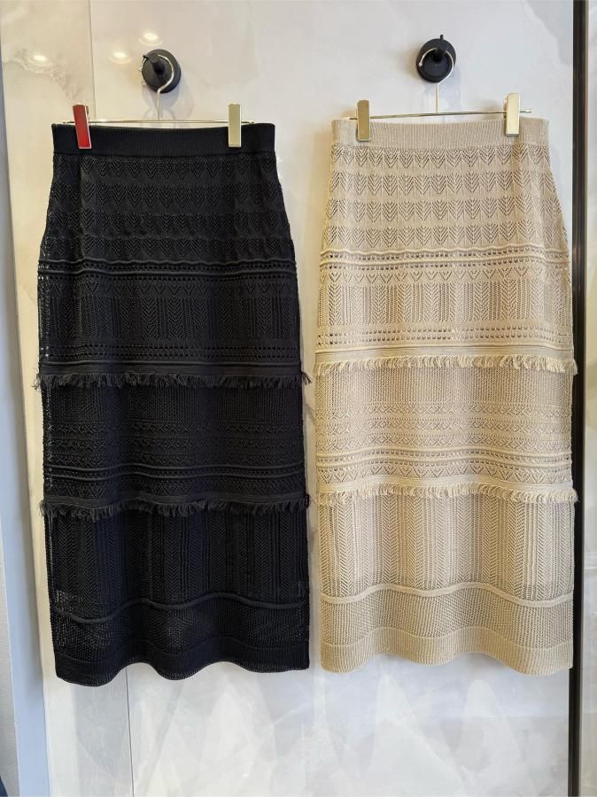 フリンジタイトスカートは、洗練されたデザインと斬新なアクセントの組み合わせが特徴のタイトスカートです。