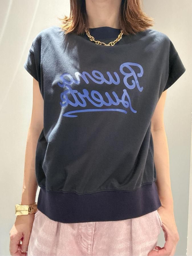 [Dignite collier]薄手スウェット生地フレンチスリーブロゴTシャツ