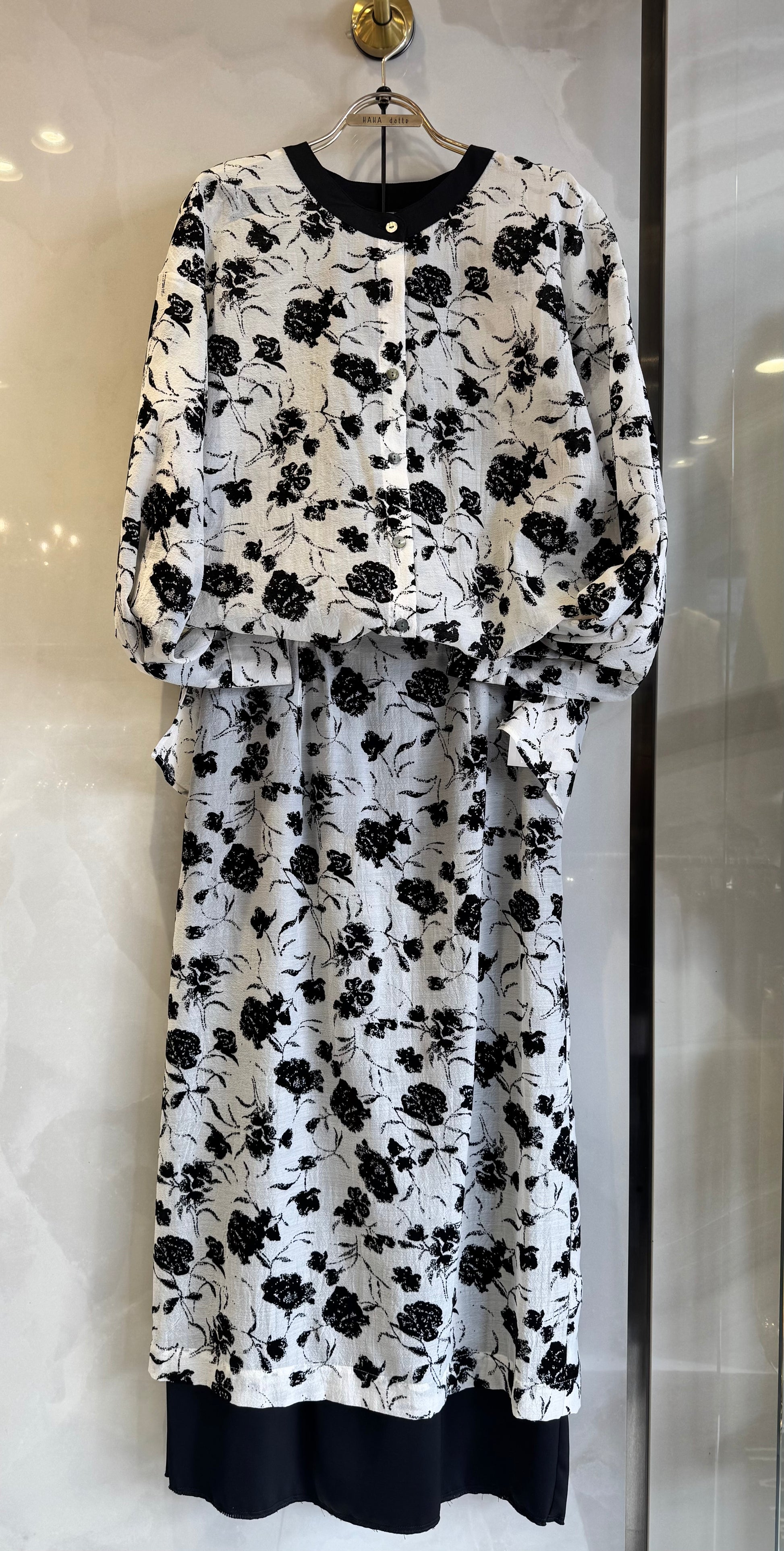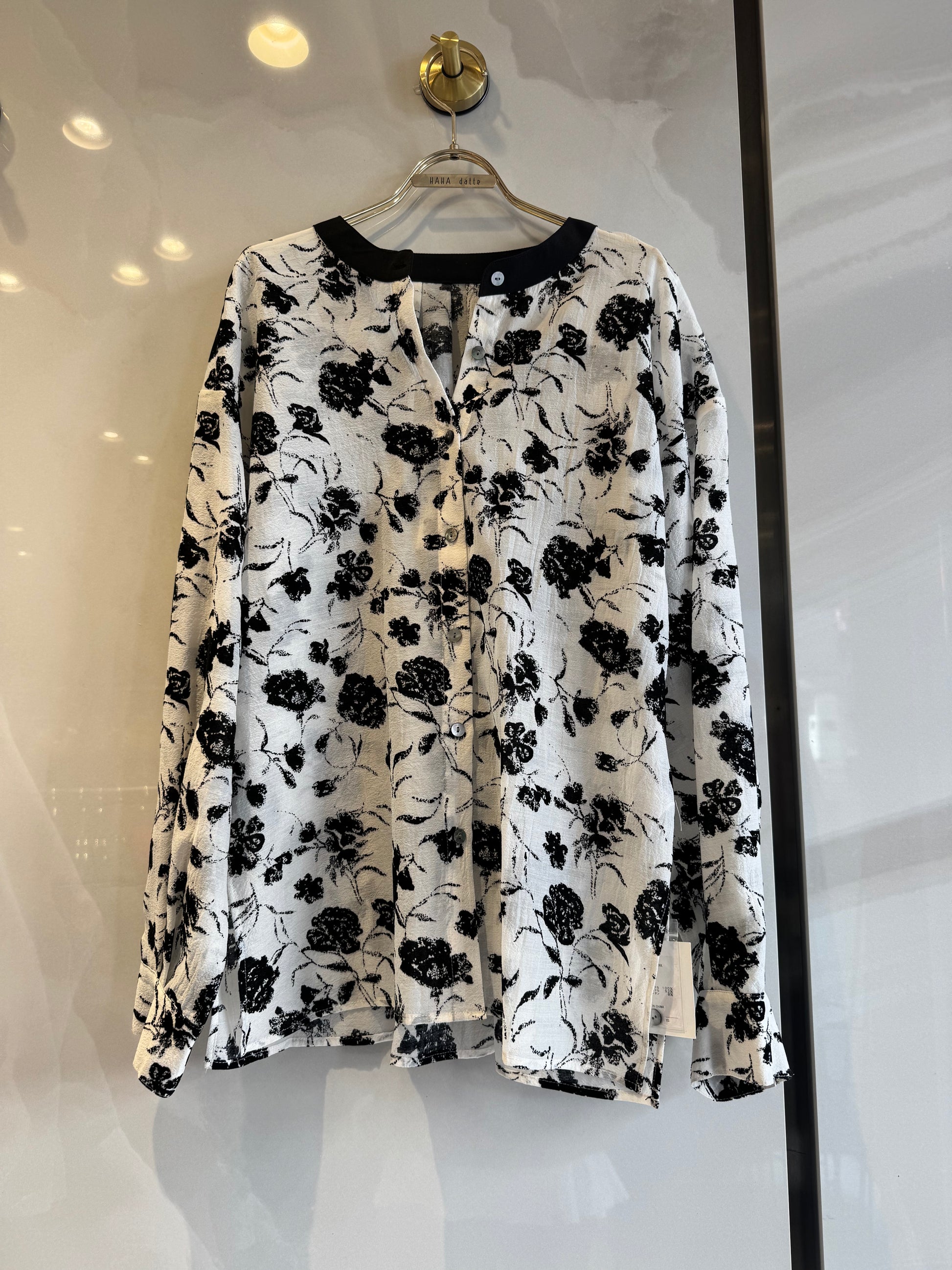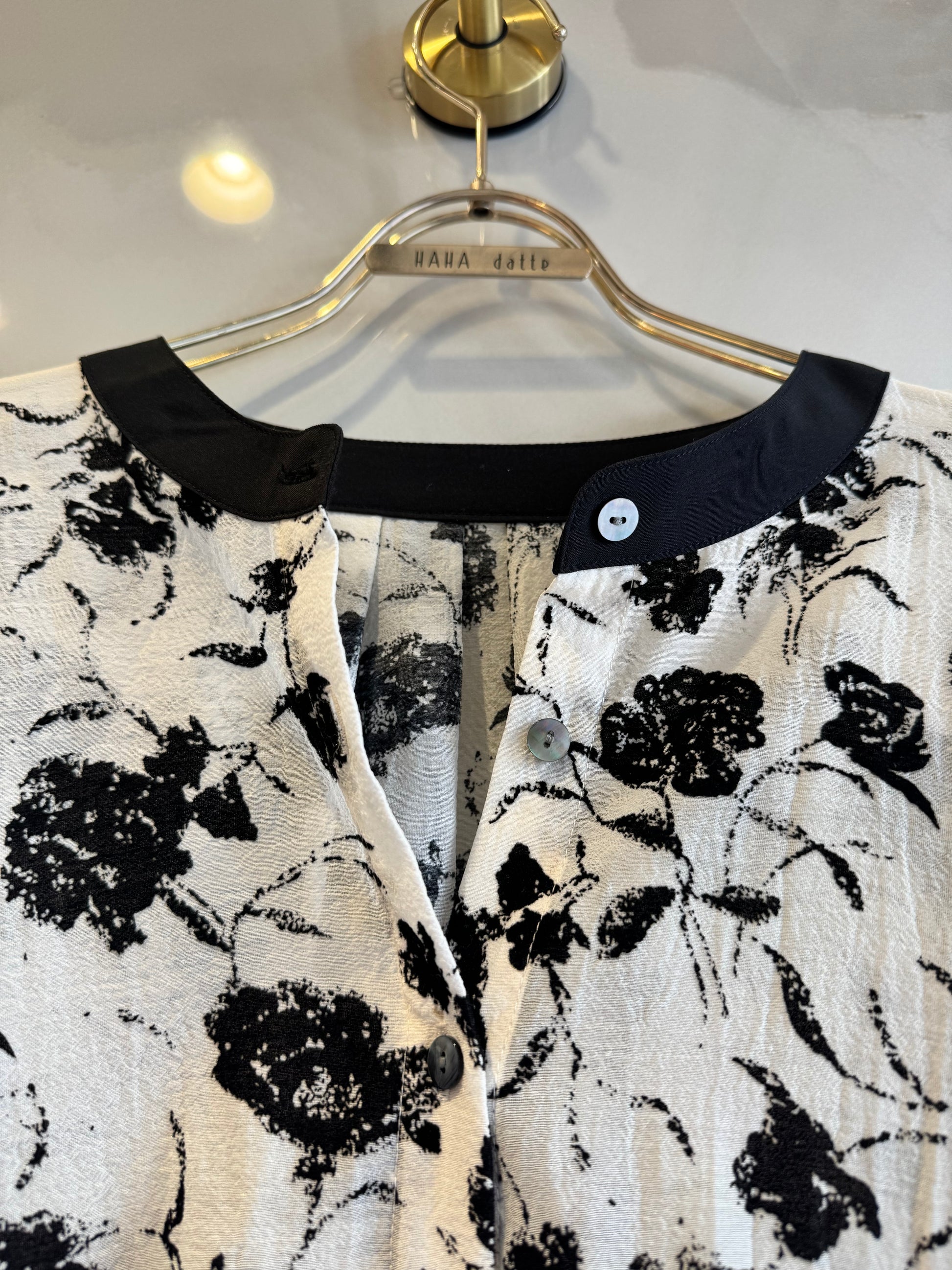 black✖️white花柄ブラウス